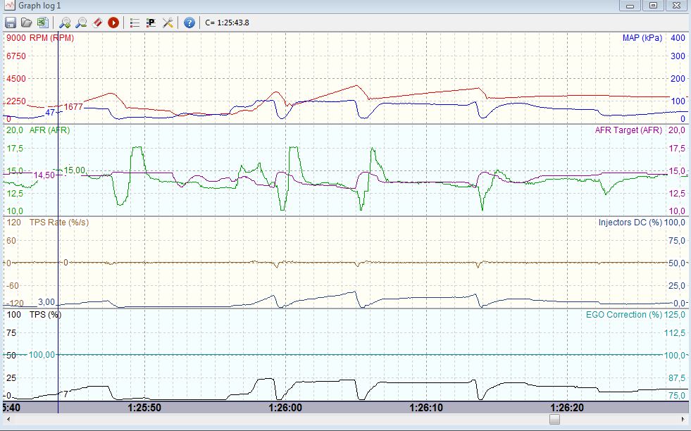 I have now spent a few hours tuning the VE map for 20-100 kpa. But no matter what i try, my afr is all over the place when i am not holding the throttle steady.