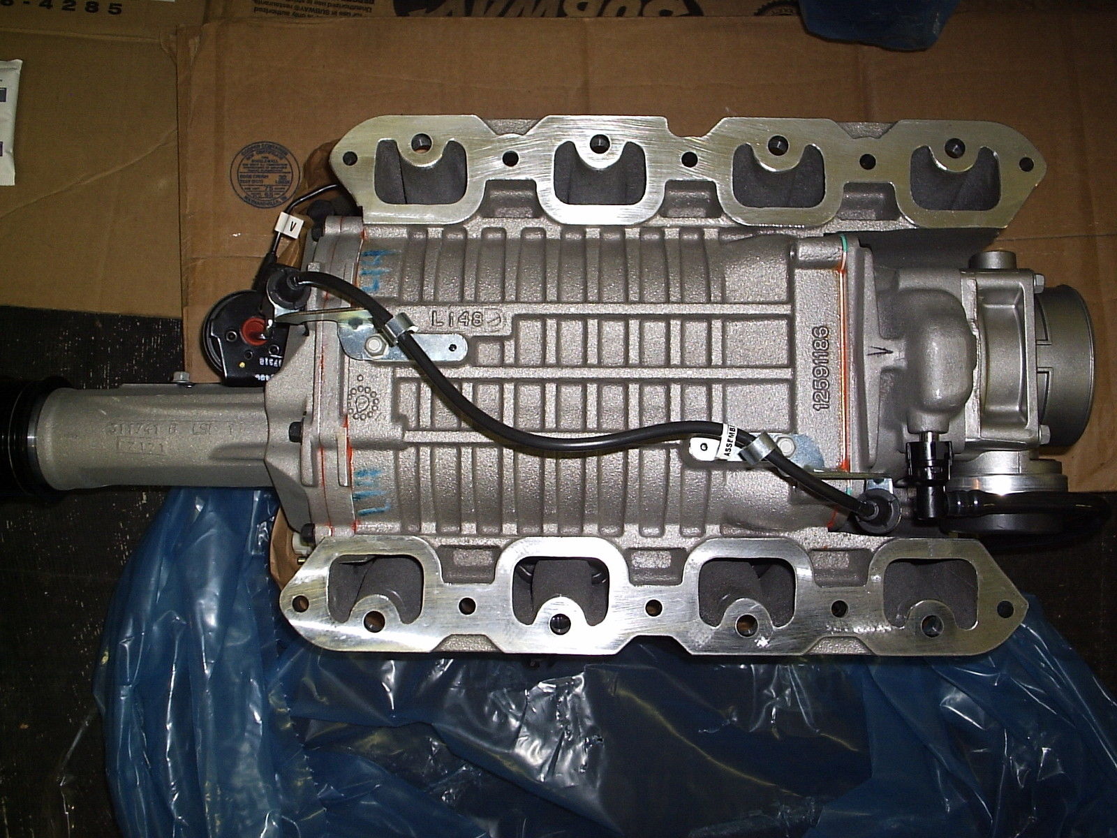 i use supercharer roots type with intake manifold and internal water cooler on the top of cylinders head.