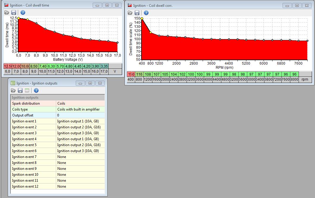 Here are my settings for the ignition module of the VR6. Blue table is dwell time from original ecu.