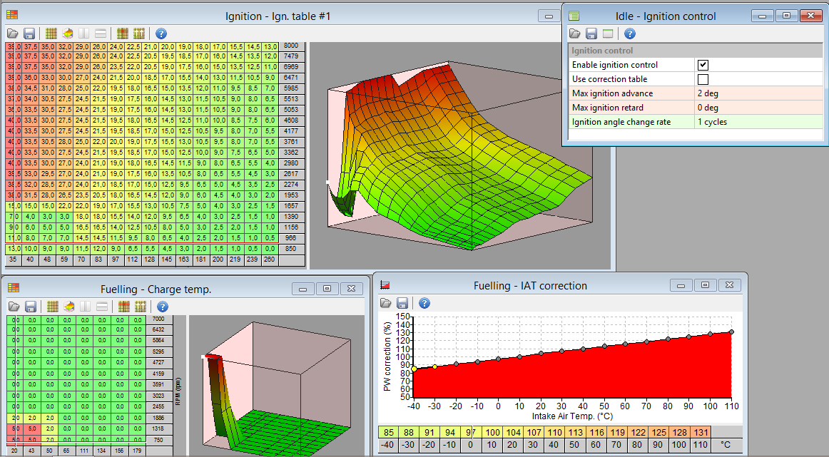 When standing still with a good idle, watch IATs and AFR climb due to heat soak. When IAT is 10° higher than driving IAT, configure IAT correction table for correct AFR and extrapolate it for a good first estimation.