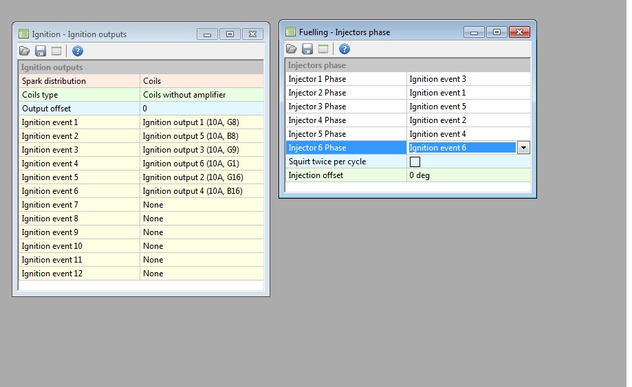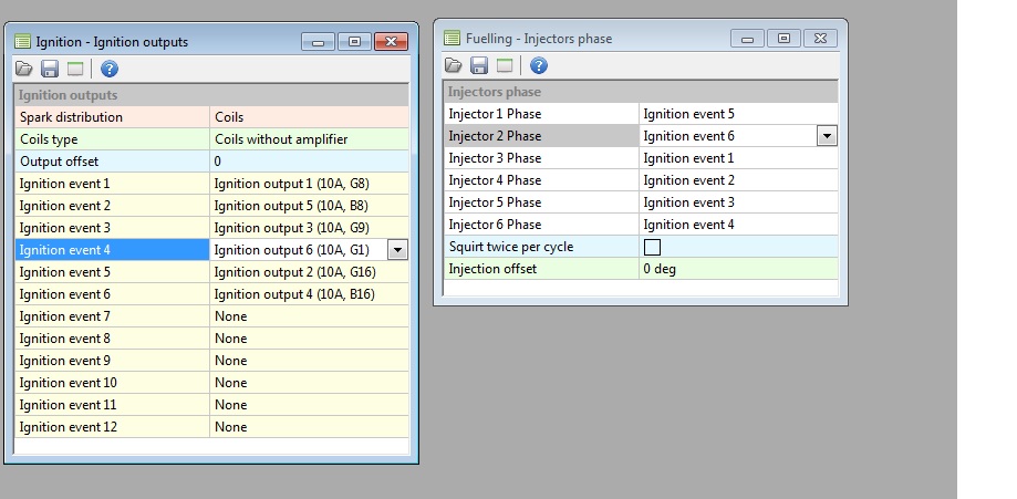 This was one of my firsr questions when get Emu , conection between firing order and injector events . What will be the bes for power ans idle for 6cyl bmw . Firing order is 6 4 2 1 5 3 so when ti fire injector 1 ? Now i fire it with coil 6