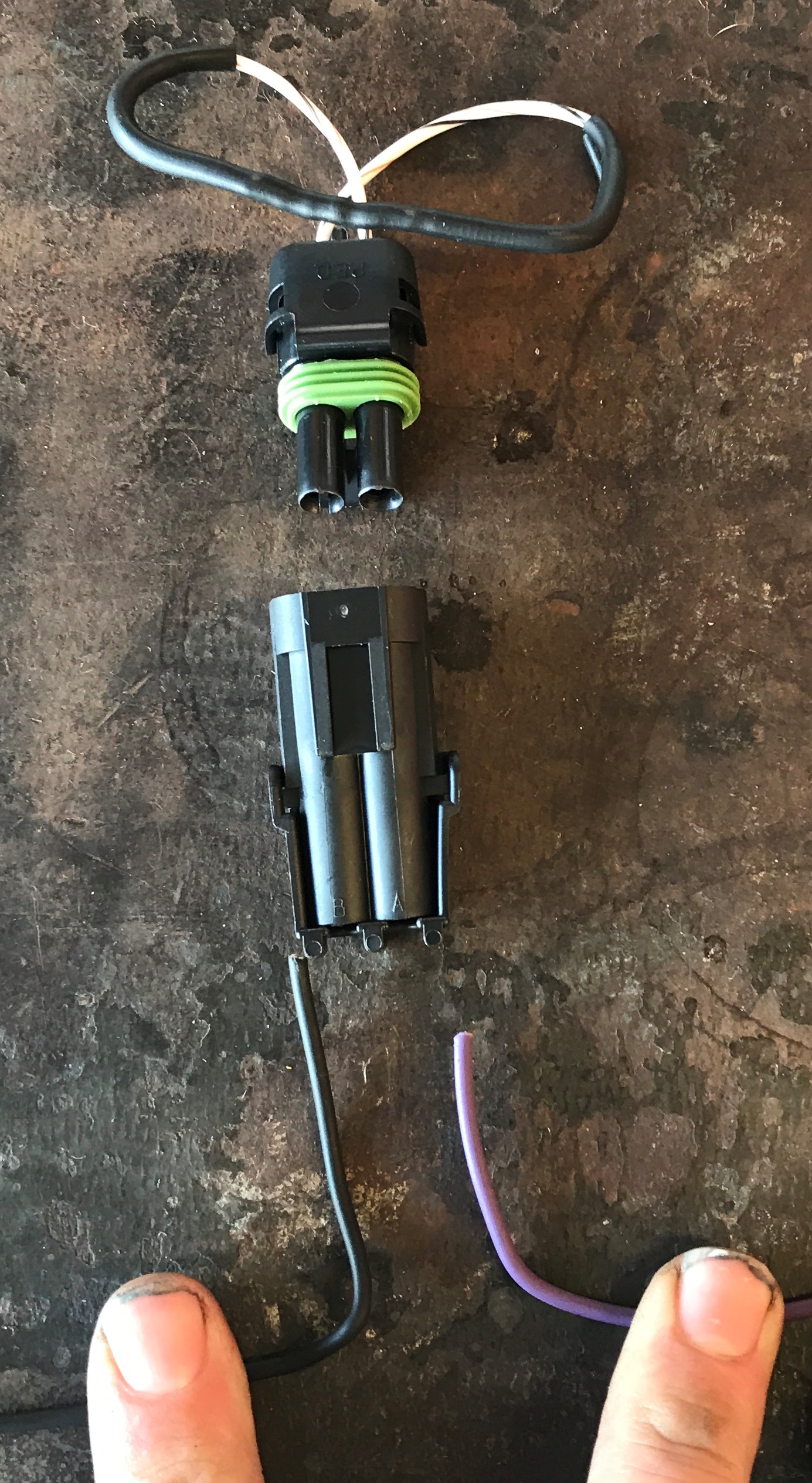 I came up with this idea to easily try various resistors. Using a 2pin weatherpack, with