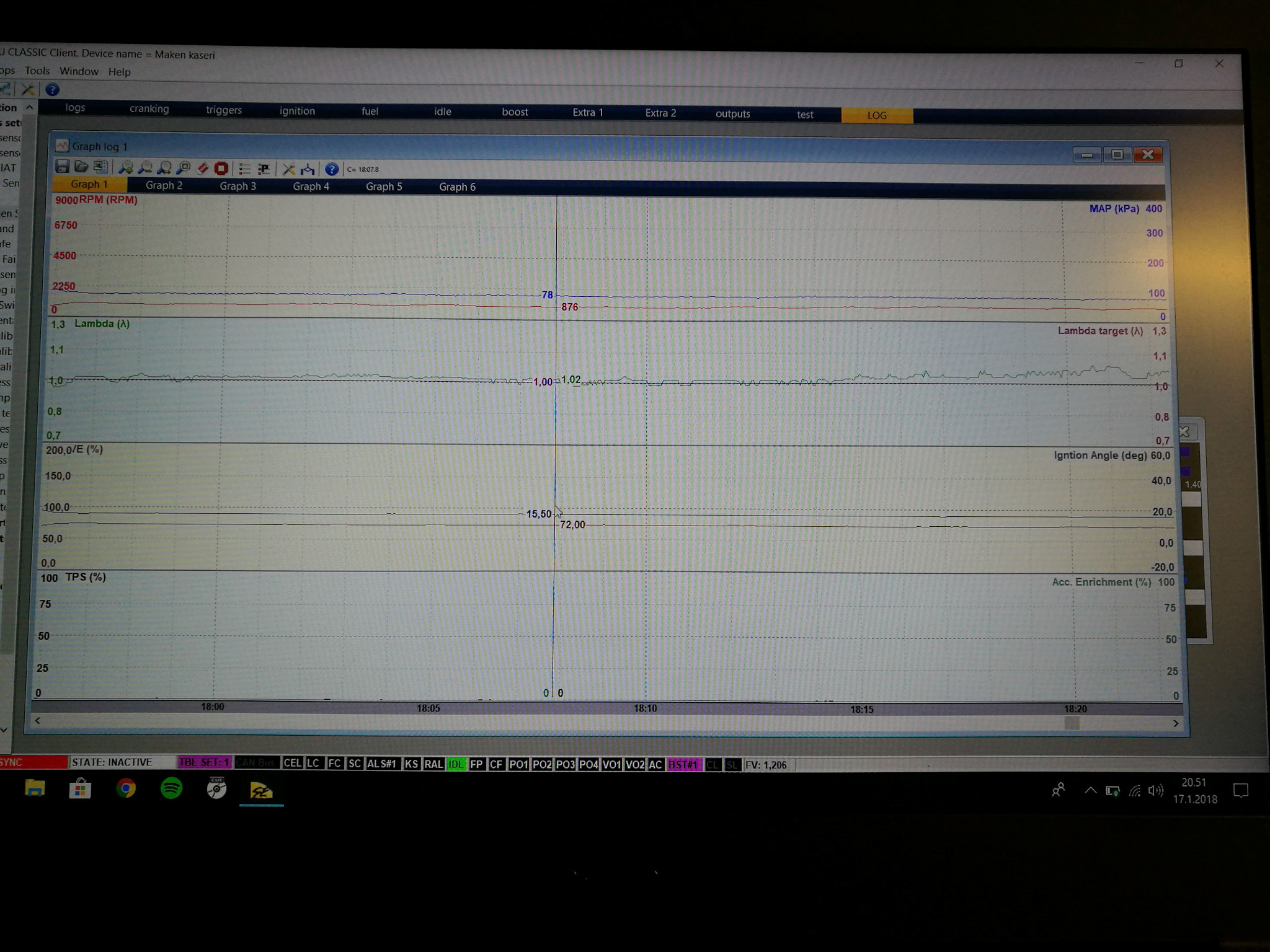It's a jzx100 chaser with 1jz-gte vvti engine that I've built and installed emu in it. E85 fuel, 1300cc ev14 @ 4bar fp, vag coils, 272 bc cams, custom intake manifold with 90mm tb, no IACV valve etc. Currently just running base map with working idle and low load vacuum fuel table and cranking tables that I´ve made to just move the car around. Ignition is spot on when checked with timing lamp.