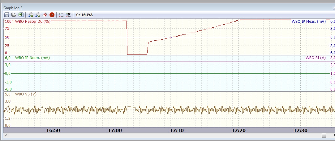 If i check the logs, there is no difference in the values if the WBO is connected or not to the emu. The only difference I can see is that if I am running the WBO with no rpm, the heater PWM goes to 127%. If i have the engine running the PWM stays at about 97%. But there is no heat in the WBO and I still don't get any readings.