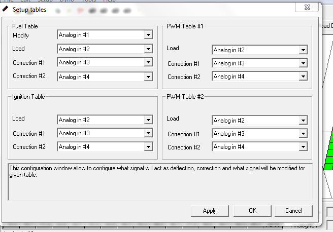So Analog 3 and 4 are corrections for the main fuel map which is read based on what you have is for load (analog 2), which then in turns modifies the signal for whatever you have set for analog 1.