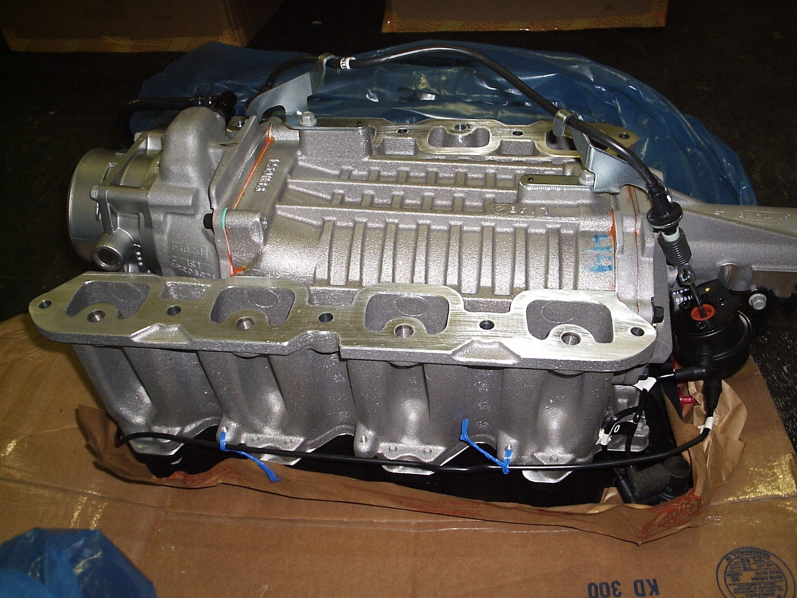 i use supercharer roots type with intake manifold and internal water cooler on the top of cylinders head.
