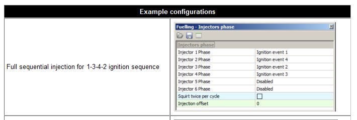 Is this example from the help function correct? As it's different from the one in the manual. I would expect the injector phase to be equal to the firing order? (in the manual it is)