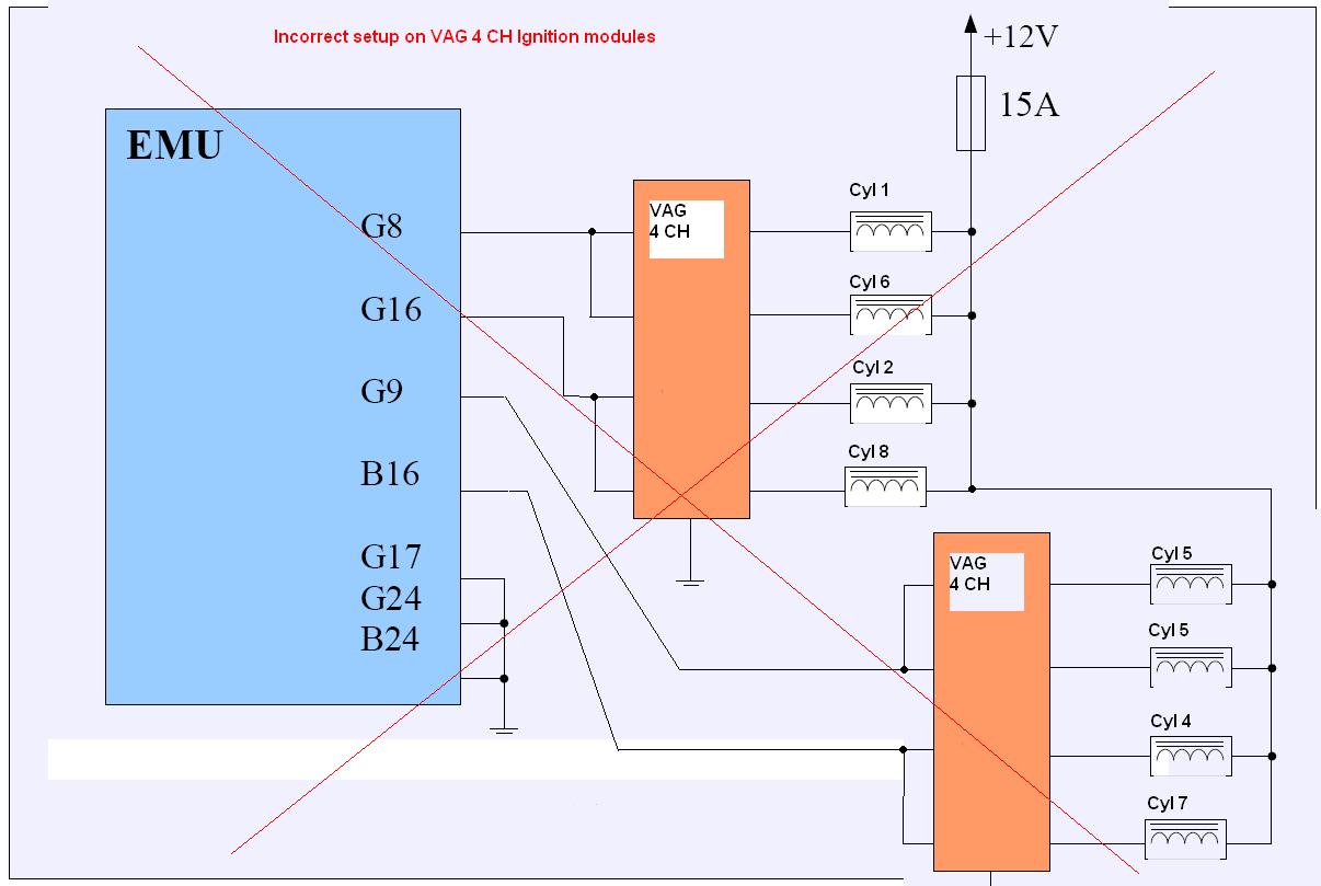 The 8 COP's are driven by 2 x VAG 4 channel drivers in a Wasted spark configuration.