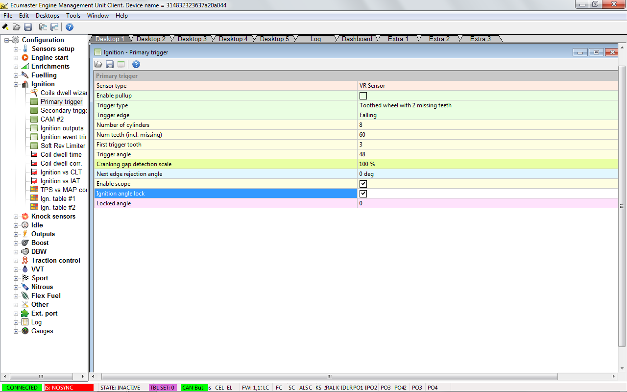 I have trigger wheel configuration drawing, ECUMaster primary trigger setup, Ignition output setup.