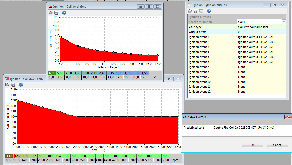 Here are my settings for the ignition module of the VR6. Blue table is dwell time from original ecu.