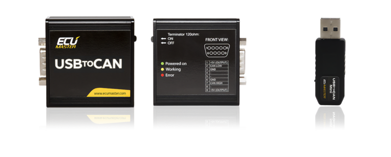 The ECUMASTER USBtoCAN is a USB interface that allows the user to connect to the CANbus network. This device is used to communicate with the PMU. A version with galvanic isolation is also available.